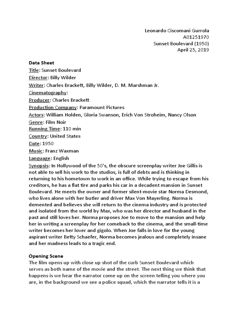 Download View Sunset Boulevard Script as PDF for free. SUNSET BOULEVARD Charles Brackett Billy Wilder DM. Sunrise 0718 Sunset 1656.